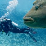 Vandaag weer drie duiken gemaakt. De eerste bij Abu Ramada South betekende een bezoek aan de “huis Napoleonvis”. Je ziet hem prominent in beeld in de video hierboven. Het is een indrukwekkende verschijnen. Helaas is hij er altijd omdat hij niet langer schuw voor mensen is omdat hij vroeger met rauwe eieren gevoerd is. De clips zitten niet allemaal in chronologische volgorde want meteen na de Napoleonvis zie je de grote sepia die we tegen kwamen tijdens de 3e duik van de dag, op het wrak De Belina. Het wrak is, net als de Excaliber van eerder, zelf niet zozeer de moeite waard, maar het is een kunstmatig rif met heel veel leven. Zo vind je er bijvoorbeeld deze krokodilvis, maar ook heel veel (baby) barracuda’s (zie ook het filmpje) die om je heen zwermen in grote scholen die soms netjes in lijn zwemmen, dan weer dwars door elkaar.