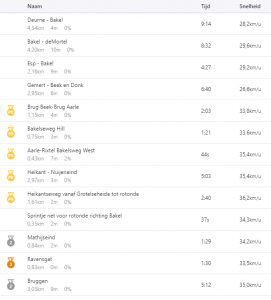 De Strava-segmenten hiernaast laten het duidelijk zien. Tot Beek en Donk had ik de wind tegen, daarna kon de gaskraan open. Lekker! 🙂