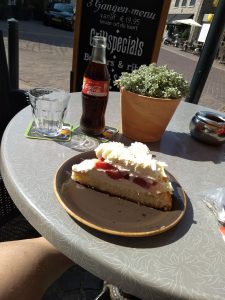 De Kasteeltuinen zagen er aantrekkelijk uit, maar daar was het niet de bedoeling dat je je fiets meenam tot aan het terras, dus even doorgefietst tot in het centrum voor cola en aardbeienvlaai. Toen had ik al bijna 80 km opzitten, dus dat had ik wel verdiend. Die 80 kilometer waren lekker. Natuurlijk, regelmatig wind tegen, maar met een kilometer of 28 per uur gemiddeld, een zonnetje was de omgeving echt stukken meer genieten dan de vorige keer. De fietspaden op het laatste stuk van de Dorperheideweg zijn niet meer van deze tijd (veel te smal, slecht onderhouden, gevaarlijk dus op zo’n zonnige dag), maar voor het overige is het een mooi stukje natuurlijk dat ik extra mee kreeg.