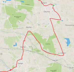 In plaats daarvan sloeg ik nu voor Vlierden rechtsaf, een mooie weg door het bos richting Liessel. Even dus weer verder weg van het eindpunt, om van daaruit door te stampen naar huis. Het was geen enkel probleem want uiteindelijk zat ik ook op het einde gewoon in een flow van doortrappen met een bepaalde snelheid. Ik had gisterenavond gezien dat ik de 114km van vorig jaar met 29,5 km/uur gemiddeld gedaan had. Daar dacht ik toen van “dat gaat hem dit jaar niet worden”. Eigenlijk vallen me de 29,3 / 29,4 km/uur (afhankelijk van of je Garmin of Strava aanhoudt) van dit jaar daarom heel erg mee. Als je bedenkt dat ik 4 weken geleden pas mijn eerste 100+ km-tocht gefietst heb. Toen in een groepje van vijf en nu solo met hetzelfde gemiddelde en een tocht van nog een paar kilometer meer. Dan zul je begrijpen dat ik gewoon heel tevreden ben. 🙂